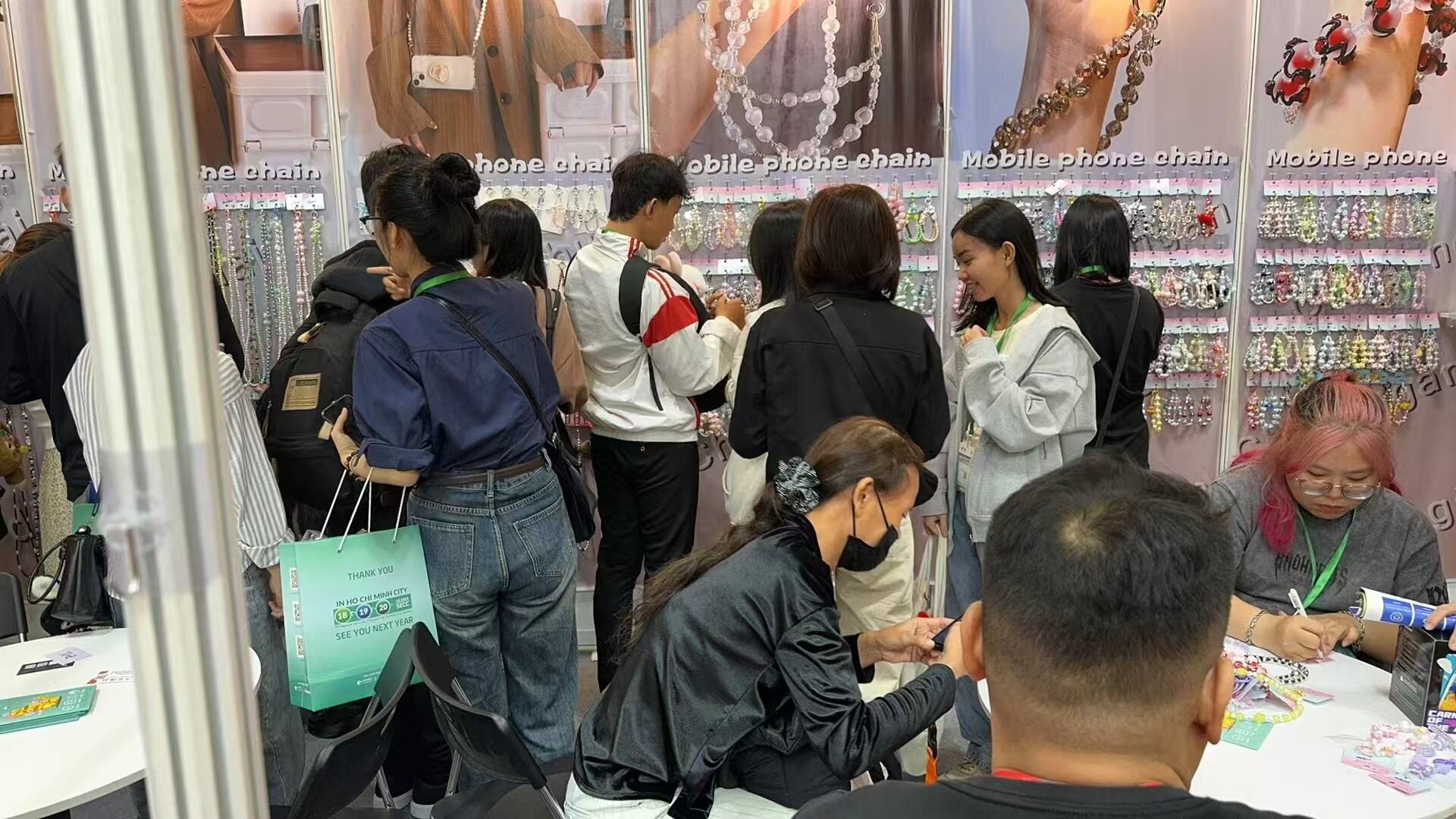 بمجرد توجيه الكاميرا إلى جناحنا، يصبح محط أنظار الزوار - هذه هي المشاهد في شركة FuZhou Smart Artifact Co., Ltd. في المعرض العابر للحدود. من مفاتيح إبداعية متعددة الوظائف إلى أقراط أنيقة وسلسلات هواتف محمولة ، كل منتج يجسد التزامنا بالحرفية والإبداع.