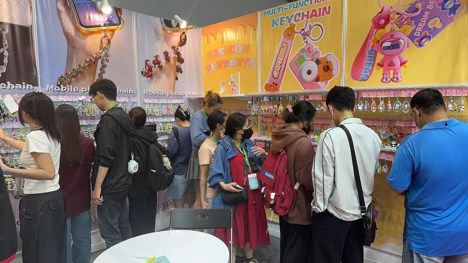 كان قسم الخدمة المخصصة في الجناح أكثر ازدحامًا: فقد فضل البعض شفافية مادة الأكريليك ورغبوا في تخصيص شعار العلامة التجارية الخاص بهم؛ فيما أعجب آخرون بالشكل الجذاب للقلادات المطاطية اللينة ورغبوا في دمج عناصر IP شهيرة... وقام مصممونا بالتواصل مع العملاء في الموقع وعرض مقترحات التصميم بأسرع وقت ممكن — ففي النهاية، يمكن لخدمتنا للتخصيص بنظام الدفعات الصغيرة أن توفر عينات خلال 7 أيام و التوصيل خلال 15 يومًا ، كفاءة وصفها العديد من العملاء الدوليين بـ"مذهلة"!