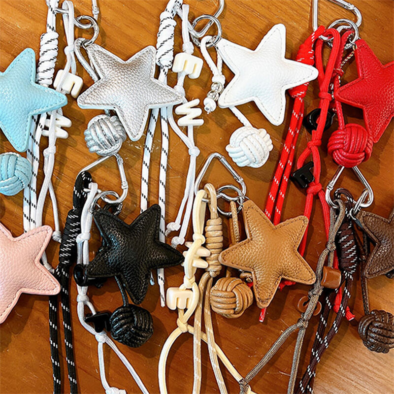 Versatile styles: Available in multiple colors (red/pink/white/brown, etc.), combining leather stars and braided lanyards, balancing sweet-edgy and minimalist textures;