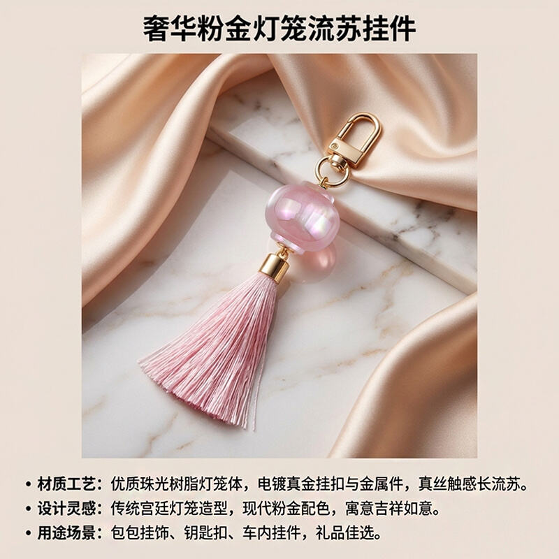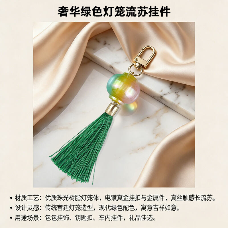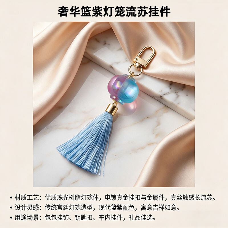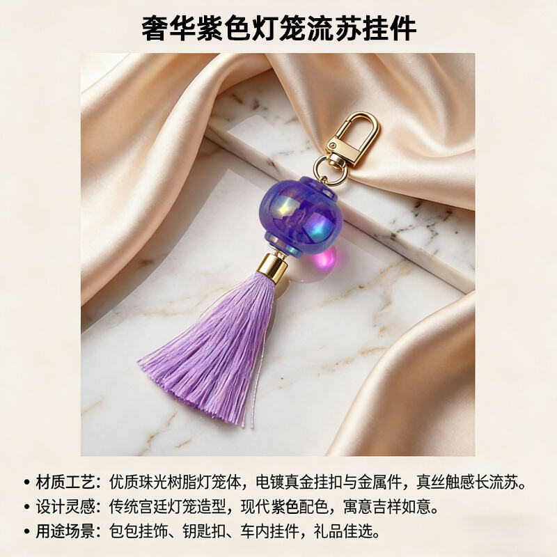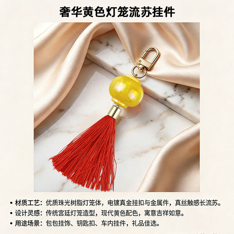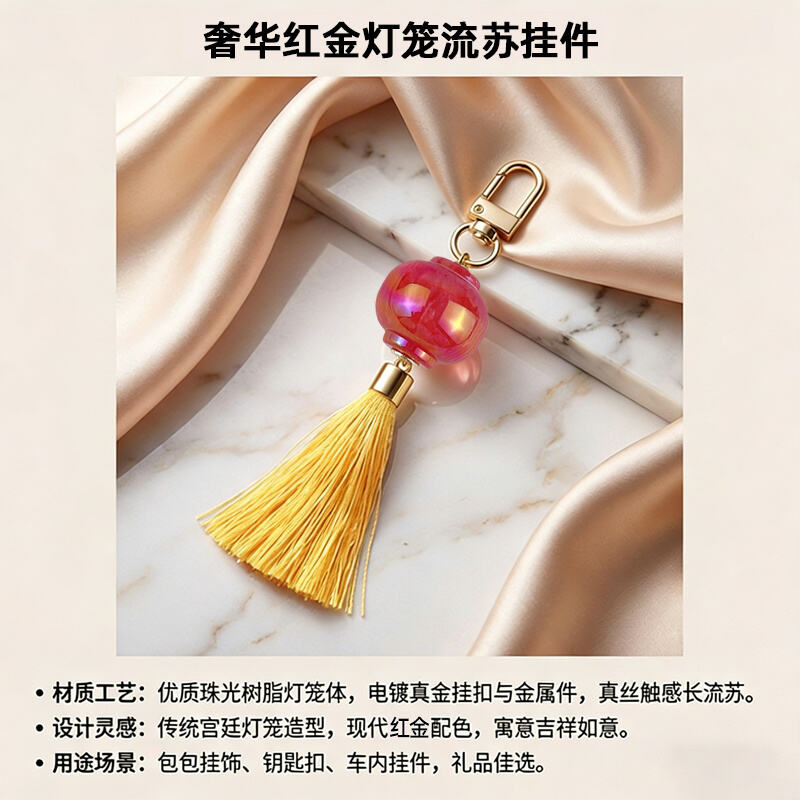 Projekt: Miniatura tradycyjnego chińskiego lampionu w kształcie, z dopasowanymi pod względem koloru frędzlami, tworząca elegancką i festiwalową estetykę.