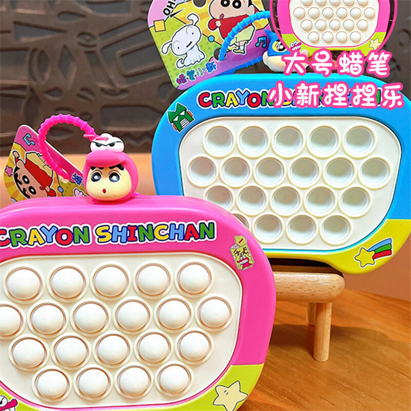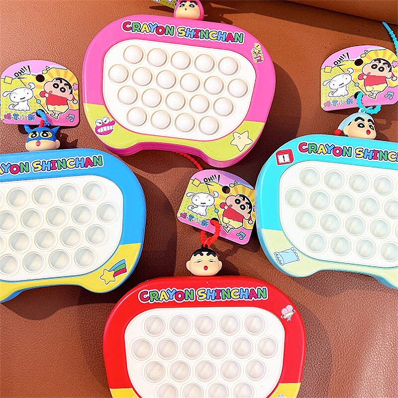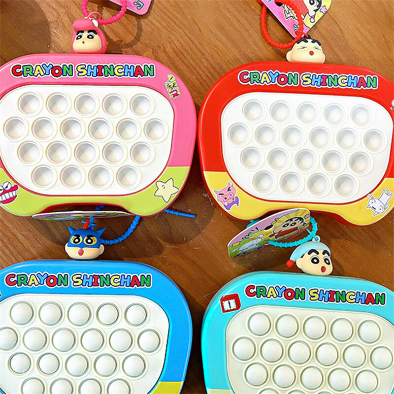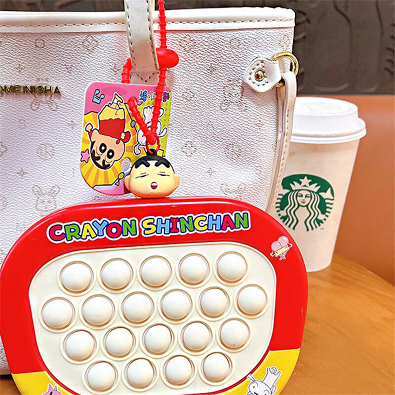 Oficjalnie licencjonowana zabawka fidget typu pop-it z motywem Crayon Shin-chan, przedstawiająca ikoniczną postać oraz jej przyjaciół na kolorowej obudowie. Każdy brelok wyposażony jest w mini 3D podwieszkę z postacią Shin-chan lub inną postacią, przymocowaną do pasków, co dodatkowo podkreśla uroczywość produktu.