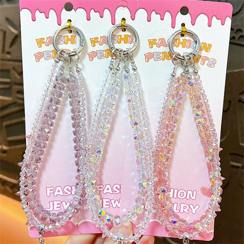 Projekt podwójny łańcuszek z koralikami i solidnym metalowym pierścieniem do kluczy – idealny do mocowania na torbach lub kluczach.