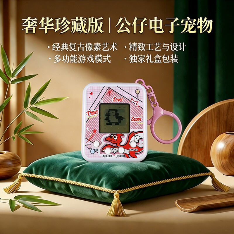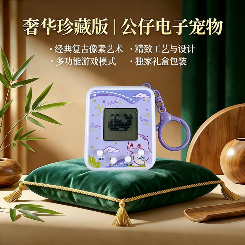 Funkcja: Wbudowane klasyczne retro gry elektroniczne (np. wychowywanie zwierzaka domowego, proste gry arkadowe) z wyświetlaczem poziomu/wyniku/czasomierza zapewniającym nostalgiczny styl rozgrywki.